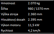 ochranný rám nebo kabina, mechanický či hydraulický rychloupínací systém lžic, dvoučepový, oboustranný.